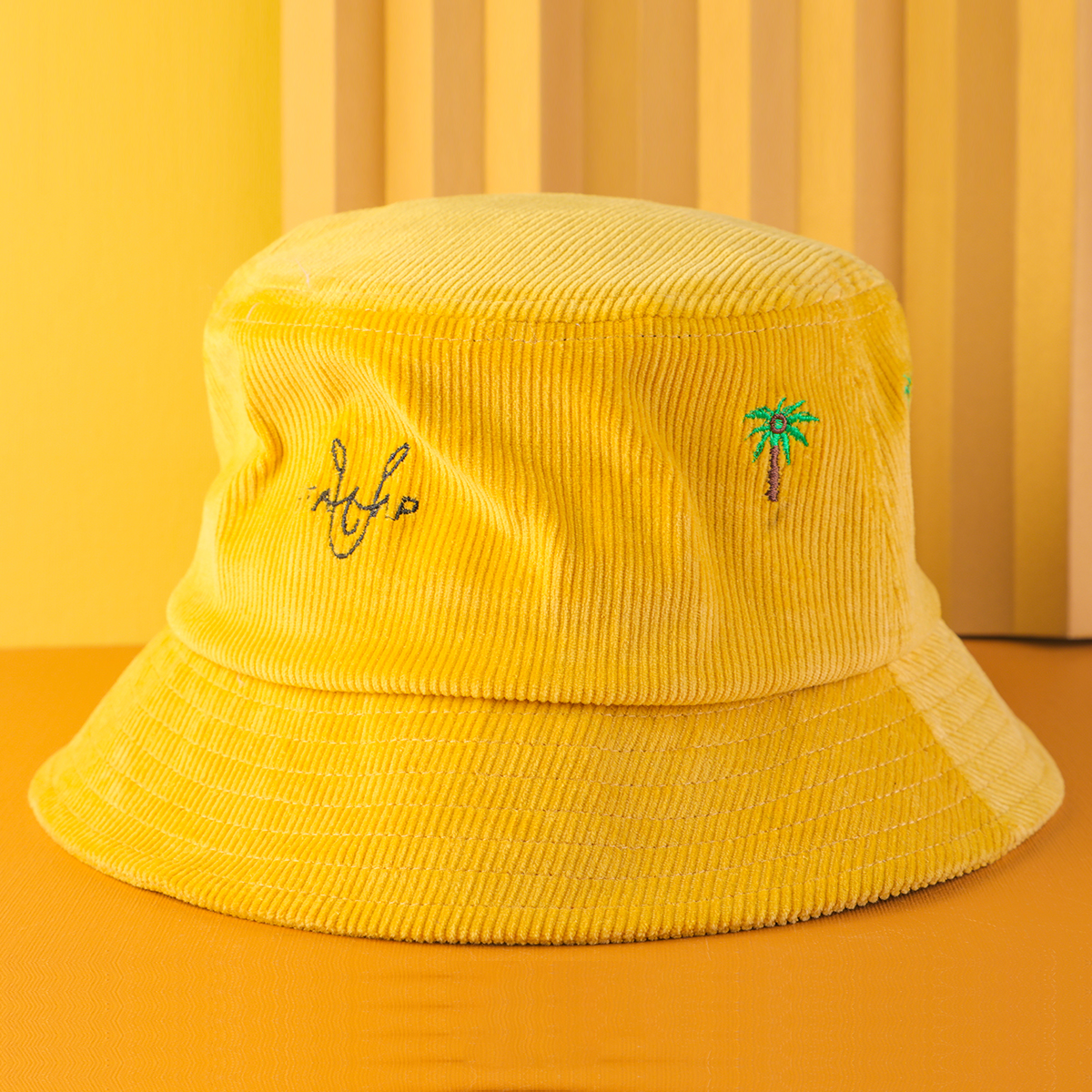- embroidery vfa logo yellow corduroy bucket hats custom